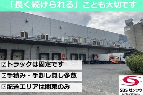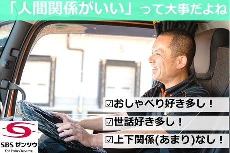 仕事内容 船橋支店は何といっても人間関係がいい! ◆おしゃべり好きの方が多いです ◆世話好きな方も多いです ◆上下関係はあまりありません ◆30代~50代まで幅広く活躍中! ◆未経験スタートの方も数多く在籍しています ┗大型免許取り立ての方 ┗大型二種免許をお持ちの方で運送業未経験の方 休みはできるだけご希望に合わせます ◆完全週休2日でゆっくり休養してください ◆有給休暇年間5日間取得は当たり前です ┗頑張ってドライバーさんのご希望に応じています 具体的な仕事内容はこちら ◆1日3件程度なので、直ぐに覚えられます! ◆配送エリアは千葉・埼玉・東京・神奈川(遠方なし) ◆冷凍・冷蔵倉庫や物流センター間の配送です ◆運ぶものは冷凍・冷蔵やドライの食料品中心 ◆乗車するトラックは固定です ┗ほとんどカスタムはできませんが・・・ 充実した研修と安全への取り組み ◆未経験でも安心の充実した研修制度! ┗座学研修や同乗研修(2~3週間)など ◆従業員の安全第一! ┗「働きやすい職場認証」「Gマーク」取得済! ┗ドライブレコーダー、衝突軽減ブレーキ完備 ◆運行管理者資格などの資格取得支援制度あり ◆コンプライアンスにも力を入れています 当社が超安定しているワケは・・・ ◆東証プライム上場のSBSグループだから安定・安心! ┗日本の陸運トップ10に入る売上規模です ◆食品×物流=バツグンの安定性 ┗生活に欠かせない食品を運ぶという重要なインフラを担っています ◆各種福利厚生も充実しています