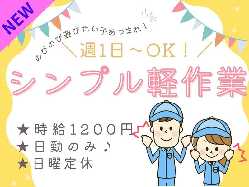 仕事内容 ╭────────────・⭐・・─╮ \障がい者採用です!/ コツコツ・もくもく…シンプルな仕事内容 ╰─・・⭐・────────────╯ ⏩週3日~OK!9時~17時勤務⏰ ⏩キレイな倉庫で快適に働けます♪ ⏩未経験&ブランクのある方も大歓迎! ┏━━━━━━┓ ⭐お仕事内容⭐ ┗━━━━━━┛ ✅倉庫内での軽作業をおまかせ! 1度覚えてしまえば簡単♪ ・ダンボールを開ける ・ダンボールを閉める ・ダンボールを潰す ・ダンボールを組み立てる ・衣類を箱から出す ・商品タグにシールを貼る ・倉庫内のモップ掛け など! ₊⁺✨―――――――――――――✨⁺₊ ┏━━━━━━━━━━┓ ⏩ここが安心ポイント⭐ ┗━━━━━━━━━━┛ 丁寧なレクチャーで安心スタート! 働きやすさのその理由は… アットホームな職場環境& 超カンタンなお仕事内容と 自由な働き方(*ゝ∀・*) ほとんどが未経験スタートヽ(*’∀’*)/☆ 職場の雰囲気はいつも明るく 休憩中は冗談が飛び交うほど! はじめての方でも働き易い環境です☆ 【送迎あり】 「四街道駅・勝田台駅」より無料送迎有 ₊⁺✨―――――――――――――✨⁺₊ ┏━━━━━━━━━━━┓ ⏩働きやすさのポイント⭐ ┗━━━━━━━━━━━┛ ✅週3日~OK! プライベートを大事にしながら 働ける環境です✨ ✅シフトの希望相談のります! プライベートの予定や 家族行事などでのお休み希望も お気軽にご相談下さい('ω')ノ ✅夜勤なし! 日勤のみ・始業が9時~だから 無理なく健康的な生活リズムに! ₊⁺✨―――――――――――――✨⁺₊