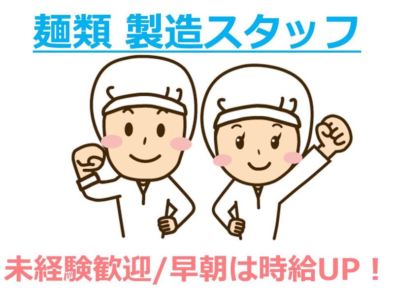 仕事内容 \この求人のポイント/ ◆ 未経験スタート歓迎! ◆ 6時から8時は、嬉しい時給100円UP! ◆ モクモク作業がメイン◎シンプルなライン業務 ◆ 学歴・年齢・経験不問!丁寧な研修ありで安心 ◆ 長期で働きたい方にもピッタリの環境◎ 【仕事内容】 当社の自社工場にて、麺類の製造業務をお任せします。 製造するのは、うどんや和そば・中華麺・パスタなどの麺類です。 地域の飲食店や配食メーカー等で使われる商品を作っています! 【具体的には】 商品の検品・包装・発送・機械の清掃など。 難しい仕事、作業等はありません。 丁寧にお教えするので、未経験の方も安心して始められる環境です◎ 【この仕事の魅力】 ● 安心・安定の職場で働ける♪ ● コツコツ取り組むモクモク作業が中心 ● 重労働なし&マニュアル完備で安心スタート ● 長期勤務もOK!老舗安定企業です。 ● おいしい麺類を作る、ちょっと誇れる仕事です♪