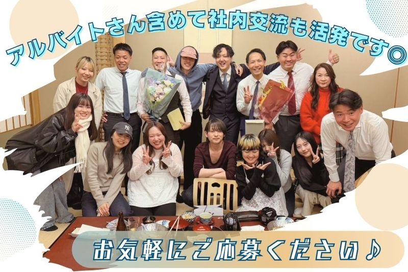 アピールポイント: // 全国を回れるレアな仕事! アクティブに働きたい方におすすめ◎ \\ 北海道~九州まで さまざまなエリアへ出張あり! 仕事を通していろんな土地に行けるのが この仕事の魅力です。 出張時の移動費は全額会社負担。 チームで動くので 未経験でも安心してスタートできます◎ 「毎日同じ場所で働くのはちょっと物足りない」 「新しい経験をしながら働きたい」 そんな方にピッタリの環境です! ====== \20代・30代メンバー中心に活躍中!/ 平均年齢は20代後半。 未経験からスタートした 社員も多く在籍しています! 飲食・販売・アパレルなど 異業種からの転職メンバーも 多数活躍中です◎ ====== \未経験でも安心の研修制度/ ◆座学研修(2~3日) 会社や商材について基礎から学びます ◆OJT研修 先輩と一緒に現場へ同行しながら 実践的に営業スキルを身につけていきます ◆ひとり立ち 一連の流れができれば独り立ち! その後もチームでサポートします◎ ====== \頑張りはしっかり収入に反映/ インセンティブ制度ありで 成果に応じて収入アップ! ∴‥∵‥∴‥∵‥∴‥∴‥∵‥∴ 平均月収は80万円ですが 頑張り次第では 月収100万円も夢ではありません! ∴‥∵‥∴‥∵‥∴‥∴‥∵‥∴ 当社は営業未経験のスタッフを含め 平均月収80万ですので 経験に左右されず活躍できる環境です! 未経験スタートでも高収入を目指せるので 少しでも興味のある方はぜひご応募ください◎ 「営業にチャレンジしてみたい」 「同年代の仲間と成長したい」 「しっかり稼ぎたい」 そんな方はぜひご応募ください!