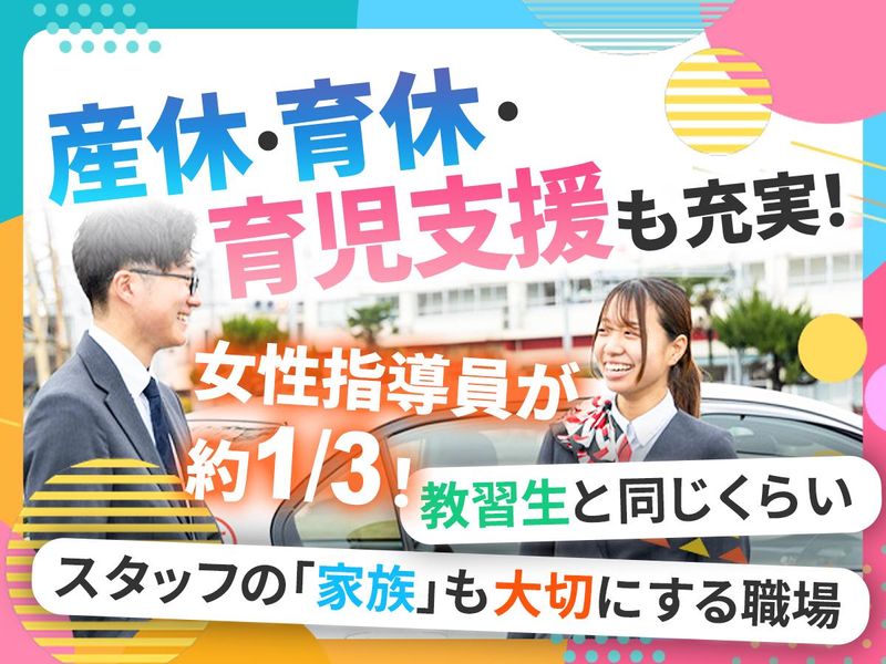 職場環境 ~女性スタッフが多数活躍中!~ 指導員の約1/3が女性で、家庭との両立に理解があるため 「困った時はお互い様」と支え合う文化があります。 休憩室など設備も充実。 チームで教習生を支える一体感があり、未経験でも馴染みやすい職場です。