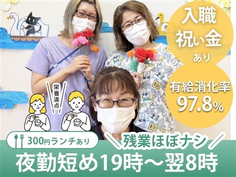 <当法人のここがよい所☆> ●残業がほとんどなく、定時で退勤できる。 ●希望休もかなり取りやすく、連休も取得できる。シフト完成後の勤務変更もできる。 ●人間関係に悩むことなく働ける環境。 ●若い世代からシニア世代まで幅広く在籍。 ●1日の業務の役割分担が決まっていて働きやすい。 ●有給休暇の消化率は高め!入職3年以上のスタッフは毎月有給休暇を月1日以上消化、消化率は97.8%と高水準。 ※体調不良時や家庭事情、やむを得ない事情などにおいての有給休暇取得はもちろん、自分の有給休暇を旅行や推し活・趣味にあてるなど、有給休暇を積極的に取得中! <ご希望に応じた選考の進め方に対応しています> ・応募しようか迷っている。 ・給与について質問がある。 ・興味あるけど面接まではちょっと… ・本エントリーの前に話を聞いてみたい! ・求人全般について質問したいことがある! など そんな方も是非お問い合わせください。 例えば ●「いきなり面接ではなく、まずは施設の雰囲気を見たい・話を聞いてみたい」 →職種によりますが、施設見学や説明の機会を設けさせていただいております。 ご不明点や気になることもどんどんご質問していただいて大丈夫ですよ。 ●「少し先に転職を考えています」 →職種や部署によっては、半年先など先の入職でも柔軟に対応しているケースもございます。 今の職場で勤務しながら、まずは話だけ聞いてみるということや、空いている時間からスタートしたり、ということもご相談可能です。 気になることがあれば、お気軽にお問い合わせやご応募下さい。 お待ちしております。
