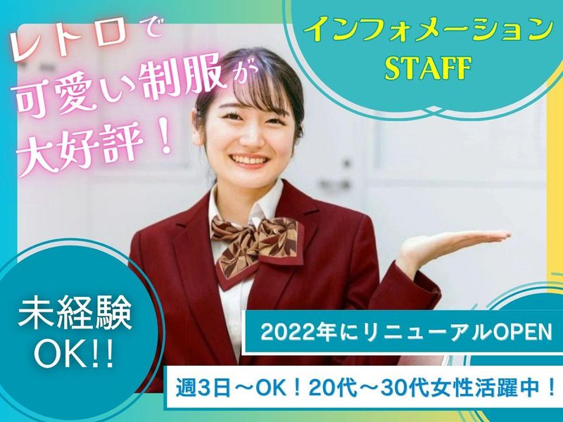 仕事内容 ╒━━━━━━━━━━━━━━━━╗ ⭐インフォメーションスタッフ募集 ⭐ ╘━━━━━━━━━━━━━━━━╝ ⛲スタッフに好評の可愛い制服あり◎ ⛲週3日~OK!週5日フル勤務も可能! ⛲未経験からスタートOK♬ ୨୧┈┈┈┈┈┈┈┈┈┈┈┈┈┈┈┈୨୧ 横浜・みなとみらいエリアの 歴史ある観光スポット内にある商業施設でのお仕事です。 国内外から観光客が訪れる人気エリアで、活気のある職場です♪ 《お仕事内容》 ⏩館内や周辺エリアのご案内 ⏩館内アナウンス ⏩電話・問い合わせ対応 ⏩資料送付などの庶務業務 ⏩その他付随する受付業務 ◎フォロー体制が整っているので 未経験でも安心して勤務可能♪ 人と接することが好きな方に ピッタリのお仕事です❁✧༚˚ ୨୧┈┈┈┈┈┈┈┈┈┈┈┈┈┈┈┈୨୧ ✨イチから丁寧にお教えします✨  ̄ ̄ ̄ ̄ ̄ ̄ ̄ ̄ ̄ ̄ ̄ ̄ ̄ ̄ ̄ 20代~30代の女性スタッフが多数活躍中! チームで協力しながらお仕事しているので、 不安なくスタートできます。 ✨こんな方にオススメです✨  ̄ ̄ ̄ ̄ ̄ ̄ ̄ ̄ ̄ ̄ ̄ ̄ ̄ ⛅受付・インフォメーションに 未経験から挑戦したい方 ⛅イベントや雰囲気を楽しみながら 働きたい方 ⛅土日勤務やフルシフトで しっかり働きたい方 まずはお気軽にご応募くださいね!