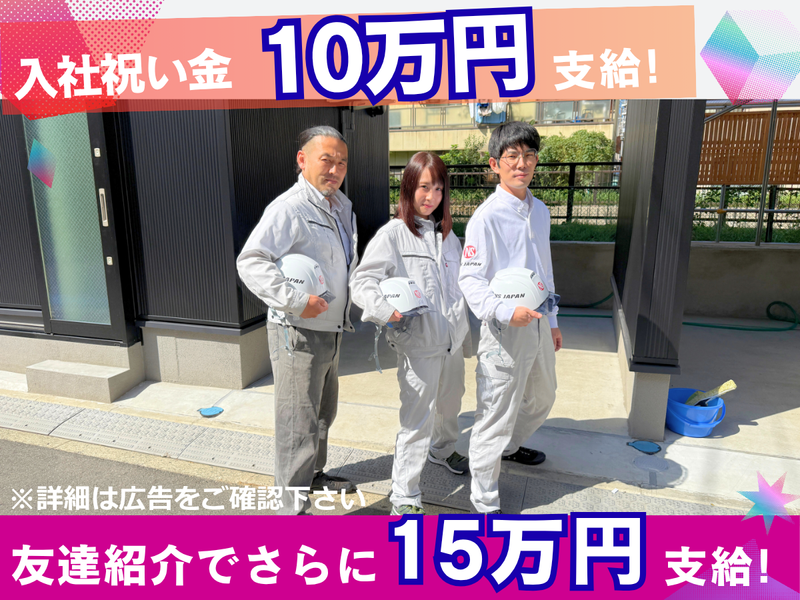 仕事内容 ✨ オススメポイント ✨ ✅入社祝い金:10万円(90日勤務後) ✅友達紹介制度:15万円(90日勤務後) ✅最短3日での入社も可✨即勤務OK♪ ✅仕事量が豊富で収入も安定 天候に左右されないので安定して稼げる◎ ✅タトゥー・ピアス・ネイル・髭OK(規定) 「働きやすさ」を大切にしているので、 面接の時もお仕事が始まってからも、 どんなことでもお気軽にご相談ください✨ ▼▽▼✨電話応募も大歓迎✨▼▽▼ TEL【03‐5621‐2212】まで! ・・・・・・・・・・・・・・・・・・・・ ✨ お仕事内容 ✨ 建設現場にて ✅傷や汚れを防ぐ養生材をテープで貼る ✅窓を拭く など シンプルな作業をお任せします!! 「 おはようございます!! 」 元気な挨拶で気持ちよく一日をスタート♪ コツコツ・モクモク作業がで簡単安心◎ 必要な知識やお仕事の流れは 先輩スタッフが丁寧にお教えします✨ あなたの経験を活かして活躍してください! ・・・・・・・・・・・・・・・・・・・・ ✨ 1日の流れをご紹介 ✨ 朝礼と作業確認ミーティング。 その後作業開始(基本的に直行直帰) ▼10時から15分程の休憩を挟み作業再開 ▼1時間の昼休憩 ▼15時から15分程の休憩を挟み作業再開 ▼17時になったら作業を終え現場から撤収 ・・・・・・・・・・・・・・・・・・・・
