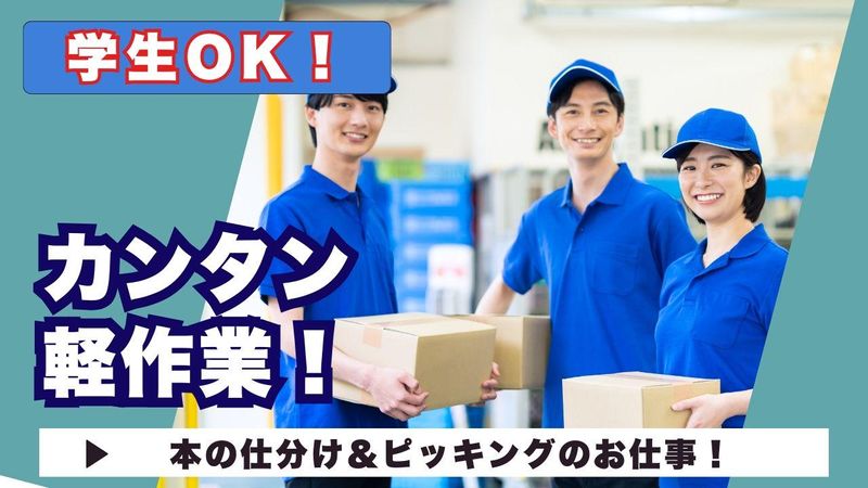 短期×日払OK 週3⽇〜 本の仕分け・ピッキングなどの軽作業