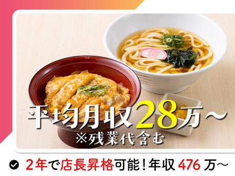 仕事内容 \家族亭のココが魅力/ ■1分単位で残業代支給! ■残業代込みで月収平均28万以上 ■明確な評価基準と幅広いキャリア ■中途でエリアマネージャー昇格実績多数★ ■店長や男性も産休・育休取得実績あり ■東証プライム上場のSRSグループ! ■平均勤続年数19年!  ̄ ̄ ̄ ̄ ̄ ̄ ̄ ̄ 【 仕事内容 】 ________ 得得うどんの店舗スタッフとして、 キッチン・ホールどちらもお任せします。 キッチン業務からはじめ、 メニューを覚えたあとはホール業務も担当いただきます。 <研修について> (1) 本社キッチン研修(2日間) ・天ぷらの揚げ方などを習得。 ・完全マニュアル化! =誰でも同じように完成できるようになります。 (2)店舗キッチン研修(2日間) ・あなた専属の本社の教育担当つき! =分からないこともスグに聞ける環境です。 ・徐々に丼物調理・うどん調理・洗い場を覚えていきます。 ・・・・・・・・・・・・・・・・・・・・・・・・・・・・・・・・・ 【家族亭のキャリアパス】 一人ひとりのご希望やペースに合わせて、 幅広いキャリア選択をご用意しています。 \経験者のキャリア/ 2年目:店長に昇格(年収476万~) 5年目:地区長に昇格(年収567万~) 中途入社でエリアマネージャーに昇格した先輩も複数名います○ 【他にもキャリアの幅は多数!】 年収650万以上の営業部長への昇格 年収740万以上の事業部長への昇格 本社での教育担当業務や店舗開発業務へのキャリアチェンジ グループ企業へ転籍出向 などなど 【過去には…】 コンビニやスーパーのレジ店員、住宅販売系、 音楽関係で働かれていた方など、様々な方が当社でご活躍いただいています! あなたの理想の働き方やキャリアを当社で叶えてください〇 ・・・・・・・・・・・・・・・・・・・・・・・・・・・・・・・・・ 【 スタッフの声 】 <中途入社7年目/Sさん> これまで飲食店を6社経験し 家族亭は7社目になりますが、一番長く続いています。 入社理由でもある明確な評価基準や 幅広いキャリアの選択肢が続けられる理由です。 複数店舗を経験できるので 多数の先輩から様々なやり方を学ぶことができ 日々成長を感じながら働けます。 今は店長としての新たな目標があり、 自分自身も成長のステップを踏みながら 飽きずに働き続けられる環境です。 これからは地区長を目指したいと思っています。 地区長になるとお給料もアップするので 家族を養う身として3年後にはなりたいと思っています! ・・・・・・・・・・・・・・・・・・・・・・・・・・・・・・