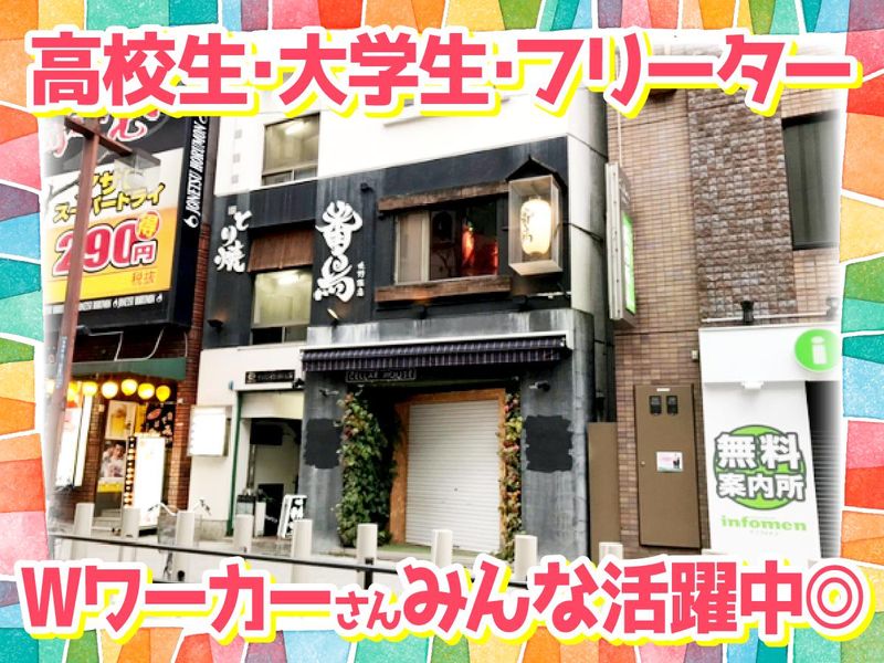 仕事内容 \居心地の良さ、神戸で1番自信あります!! みんな “人”で入って“人”で続くお店◎/ ★人柄重視の採用します!★ だから… ①髪型髪色・ピアス・ネイル・ひげ・タトゥー▶オシャレは何でもOK! ②未経験もちろんOK!高校生&大学生&フリーターさん誰でも活躍できますよ!! ③フッ軽さ&チームワーク重視!「楽しく働きたい」が応募理由でOK★ ④「うまく喋れなくても」「最初は緊張しても」大丈夫◎ あなたの人柄をちゃんと見ます! 今回は主に”北野坂店&神戸駅前店”で勤務できるスタッフさんの募集★ 店舗は他にもあり!勤務地は面接時に相談しましょう! 【仕事内容】 ◎ホール or キッチン、 希望・適性に合わせてスタートOK! ◆ホール…席案内・オーダー取り・料理提供など ◆キッチン…洗い場や盛り付けなどの簡単作業から! でも!! 番鳥でのアルバイトは “ただの接客・調理補助”じゃなくて… □ 常連さんに「お、今日も元気やな!」って声をかけてもらえたり □ スタッフ同士が声をかけ合って自然と助け合っていたり… 研修も優しく・楽しく・分かりやすく教えます! 明日も来たくなる職場( *´艸`) そんな“人と人との距離の近さ”が番鳥の一番の魅力なんです。 \おもろい人しかおらん!! そんな職場です/ スタッフ同士の仲の良さは 番鳥でスタッフが長続きする大事なポイント。 夏と年末には、全店舗合同で飲み会開催! 総勢20~40人が集まるビッグイベント★ 「初対面でも気づいたら仲良し」 「社員さんとアルバイト垣根なし!」 「笑いが止まらん」そんな空気感です(笑) 明るく元気なメンバーばかりで、まるで部活みたいな雰囲気! 笑い合いながらも、やる時はしっかり。 そんなメンバーが揃ってます。 他大学の友達ができるのも番鳥ならでは◎ 学生もフリーターも、気づけば“仲間”になってます! ◆長く続けるスタッフが多いのも自慢! 5年~10年続いているstaffも多数★ 高校生から働き始めて大学卒業まで続ける子も◎ 「気づいたらここが一番居心地よかった」そんな声多数! ◆頑張る人はちゃんと見てます。 焼きを覚えたい人にはどんどんチャンス! 続けてくれる子には時給UPでしっかり評価。 ◆そしてお楽しみの…まかない無料! どんぶりを持って帰る子もいるほど人気!(笑) 【お試し短期勤務OK!】 働いてみて「ここで働きたい!」と思ったら一緒に頑張ろう☆ 初バイトも全力で応援! バイトデビューするなら番鳥で!