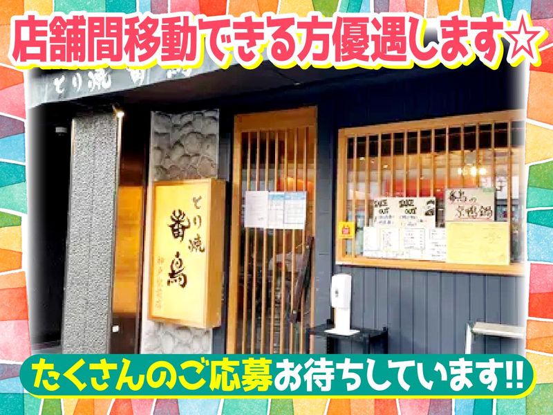 求めている人材 未経験OK!初バイトOK! ブランクOK 扶養内勤務OK WワークOK 飲食店の勤務経験を活かしたい方も歓迎! ◎高校生・大学生・フリーターみんな活躍中! ・関学・神戸学院などの学生さんが多数在籍 ・高校生から大学卒業まで続ける子も! ・フリーターで「番鳥一本で!」→正社員登用もあります! 「Wワークしたい」「稼ぎたい」「楽しく働きたい」 どんな理由でもOK。 大事なのは“人柄”と“気持ち”です* =================== 番鳥は神戸エリアで店舗展開している焼鳥店★ =================== ・兵庫本店 ・北野坂店 ・神戸駅前店 ・三ノ宮駅前店 ・新長田店 ・番鳥酒場 これからも店舗展開を予定しています! 入社後の勤務店舗については ご自身の勤務可能な範囲で相談OK! 面接時にお話ししましょう! できるだけ複数の勤務地で勤務できる方は優遇! =================== 【こんな人にぴったり!】 =================== □ とにかく楽しく働きたい! □ 仲間とワイワイするのが好き! □ 退屈なバイトは続かないタイプ(笑) □ “人”の雰囲気で職場を選びたい! 「バイトデビューするなら番鳥で☆」 “楽しさ重視”なあなた、ぜひ一度面接に来てみてください!