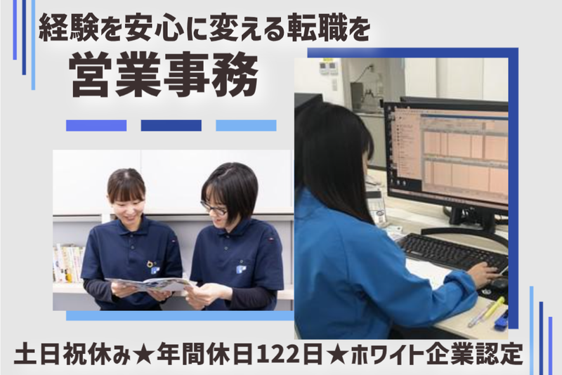 仕事内容 ✅ 数字やノルマに縛られない ― 既存顧客とのやりとりが中心 ✅ 営業スキルを活かせる ― 人と話すのが好きな方にぴったり ✅ プライベートも大切に ― 年間休日122日・残業少なめ ✅ 安心の環境 ― ホワイト企業認定取得 産休・育休制度も整備 「営業経験はあるけど、 もう数字に追われるのは疲れた…」 そんな方に選ばれているのが 当社の営業事務。 既存顧客とのやりとりが中心で、 安定とやりがいを両立できます。 =================== 主に食品・医療・電化製品分野で 使用されるプラスチック部品を 製造するメーカーです。 お任せするのは 「事務+お客様対応」のポジション。 【お仕事内容】 ●受発注入力、見積書の作成 (自社ソフトあり/入力中心) ●書類整理・PC入力業務 ●電話・メール対応 ●既存顧客との打ち合わせ (製品の形や大きさ、費用について) ※納品は別の担当者や業者が行います ●商談は基本的に電話・WEB。 ※月1~2回外出あり ※場合によっては県外出張もあり ――――――――――――――――――― 最初は先輩がマンツーマンで しっかりサポート! 「営業事務は初めて」 という方も安心して始められます。 「人と話すのは好き。 でも営業ノルマや数字に追われる 毎日からは卒業したい」 ――そんな方にとって “事務+お客様対応”の ちょうど良いバランスの仕事です。 ――――――――――――――――――― 【先輩からひと言】 オンラインサービスのチャット機能では、 毎日の様に仕事方法や職場環境の改善案・ 質問が出され、よりよい職場づくりが 目指されています。 私も業務上のマニュアルを作成し、提案 した際にはとても評価されました。 些細なことでもチャットに入力すると ほめていただけたり、上司がすぐに対応 してくれるのでやりがいを感じ、より 仕事にも力が入ります。 スピード感ある対応にこそ、当社の 「人を大切にする」社風が色濃く出ています 仕事を通じて得たやりがいは、経営理念 「生きがいと感動の創造」に繋がっている のではないかと思いますね。 プラポートは1人1人の意見を聞き入れ、 尊重してくれる会社だと実感しています。 その分、流されるのではなく自分の意見を しっかりと持ち、行動することが大切になる 社風だと言えるでしょう。 そのほかに、オフィスや食堂が リニューアルされたことも自慢のひとつ! 「社員全員が快適に仕事に取り組める様に」 そんな心配りを感じ、より一層気を引き締め 日々の業務に取り組んでいます。 ―――――――――――――――――――
