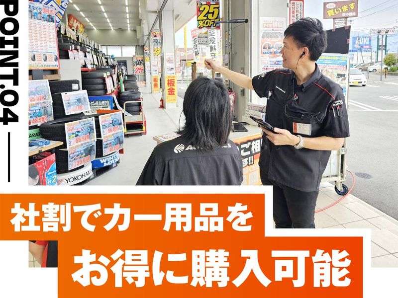 【保険制度】 雇用保険、労災保険、健康保険、厚生年金 待遇・福利厚生 【福利厚生】 *社会保険(法令) *昇給あり *車通勤OK *交通費規定支給 *制服貸与 *社割(カー用品をお得にゲット!) 【 当社について 】 カー用品の購入先No.1に輝く オートバックスのFC店を 三重県下で運営しています。 1977年の1号店出店から現在は 桑名から志摩まで県下ほぼ全域に 8店舗を展開中。事業拡大に伴い、 待遇や福利厚生を充実させて 働きやすい職場づくりを進めています。 【地域交流にも力を入れています】 当社では地域の皆様が無料で参加できる イベント「こどもばっくす」を開催! 親子でタイヤ交換体験や小物作りなど 面白い企画が満載。すべてのお客様が 気軽に来られるお店を目指しています。