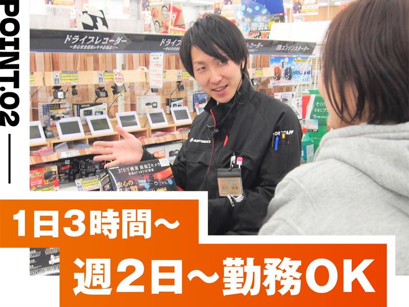仕事内容 ✅ 週2日~&1日3h~でシフト自由 ✅ 土日祝は優遇!高時給1200円 ✅ Wワークや扶養内勤務も可♪ ✅ 未経験OK!車の知識が無くてもOK ✅ 初めてのバイトやパートにピッタリ ✅ 10代~50代まで活躍中です! ✅ 社割でカー用品をお得に購入可能! ================= 【 お願いする仕事 】 当社運営のオートバックスにて 商品の陳列や店内POPの作成、 簡単なレジ打ちなどをお任せします。 「この商品の横にこれを並べよう」 「POPをこう飾るとカワイイかも」 など販促のためのアイデアは大歓迎。 スタッフ全員で意見を出し合いながら 和気あいあいと働いています! 未経験でも、車の知識がなくても 車に乗った事がなくてもOK! 気軽にご応募ください! - 【 学業や家事の合間にサクッと 】 週2日&1日3hの短時間から勤務OK! 「時給の高い土日祝のみで」 「稼ぎたいからフルタイムで」 「曜日や時間を固定せずに」 「扶養控除内に収めたい」 など、希望は最大限考慮します。 - 【 こんな仲間たちが活躍中 】 当社の店舗では新入生を含む学生さんや フリーターさん、主婦さんが活躍中! 車好きも、そうでない人も関係なく、 抜群のチームワークが自慢です。 子どもの発熱や学校行事などによる 急なシフト変更には協力して対応。 お気軽にご相談ください。