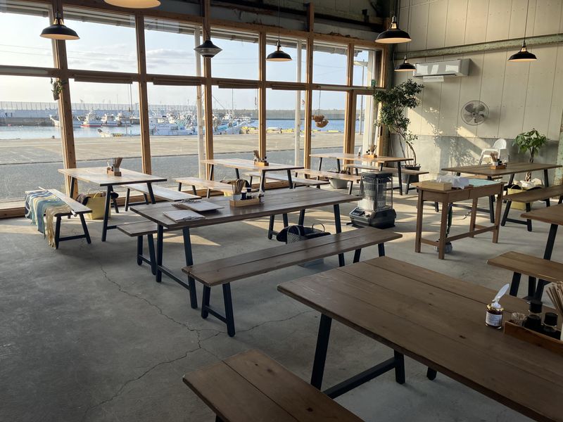 職場環境 店内はお洒落で広く、開放的な雰囲気です。 大きな窓からは漁港の風景や西浦の海を眺めることができます! 喫煙所:なし(敷地内全て禁煙)