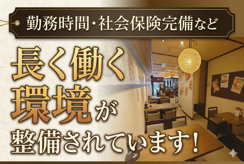 職場環境 ◆ オープンしたばかりのお店 清潔感があり、 心地よく働ける環境です。 ◆ チームで協力し合うスタイル 仕込み・調理・ホールスタッフが 連携して店舗を運営。 未経験の方も安心して スタートできる環境です。 喫煙所:喫煙所あり(屋内) 喫煙は所定の場所のみで可能です。