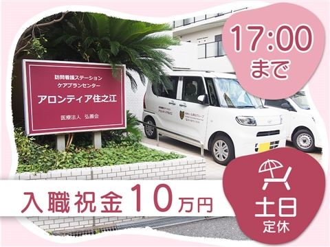 訪問看護ステーション アロンティア住之江 求人概要 訪問看護ステーション アロンティア住之江:理学療法士/正職員 <入職祝い金10万円>年間休日121日以上☆平均残業6.1時間/月◆土日休み◎終業17:00◇【大阪市住之江区、住ノ江駅、訪問リハ、理学療法士、正職員】 職種 理学療法士 所在地 〒559-0003 大阪府大阪市住之江区安立1-4-3 給与 月収22万2000円(月給21万5000円+皆勤手当7000円) 月収26万9500円(月給26万2500円+皆勤手当7000円) ※上記は、皆勤手当を支給する場合の月収例です。詳細は下記をご確認ください。 月給21万5000円~26万2500円+皆勤手当7000円 ※月給には、資格手当3万円を含む ※経験・能力により異なる 求人詳細 <入職祝い金10万円>年間休日121日以上☆平均残業6.1時間/月◆土日休み◎終業17:00◇【大阪市住之江区、住ノ江駅、訪問リハ、理学療法士、正職員】 保育補助金や皆勤手当などの待遇充実で安心!実働7.5時間でワークライフバランスばっちり◎「住ノ江駅」より徒歩7分の好立地♪見学OKですので、お気軽にお問い合わせください◇ 職種 理学療法士 仕事内容・PR ▼△▼ 正職員・理学療法士募集 ▼△▼ 【業務内容】 訪問看護ステーションにおける、ご契約利用者様の訪問リハビリを行っていただきます。 ご高齢者様が中心です。 【ポイント】 ◇2025年4月に移転しました! ◇南海本線「住ノ江駅」より徒歩7分の通いやすい立地♪ ◇在宅リハビリに興味がある方大歓迎! ◇年間休日121日以上で、ワークライフバランスが取りやすい環境。 ◇人間関係が非常によく、定着率も高くて働きやすい職場♪ ◇残業月間平均6.1時間(当法人の介護施設等在宅部門) 【訪問看護ステーション アロンティア住之江】 ◇地域に根差し、小さい施設だからこそ細やかなケアができます。 ◇地域のニーズにできる限り応え、スタッフ間の連携をスムーズに行います。 ◇自立をサポートし、患者様・ご家族様の心の負担を少しでも柔らげたい。 ◇個人個人に寄り添った支援プログラムの作成。 ◇弘善会グループの発祥の地(旧矢木外科病院)で、地域密着医療の実現に力を入れています。 ◇明るくご利用者様の事を第一に考え活動を行います。 【応募資格】 ◇理学療法士 ◇訪問リハビリの経験のある方(経験5年以上) ◇常に患者さんを中心に考え、チャレンジ精神がありスキルアップを目指す方を歓迎します。 見学希望者は随時見学可能です。 雇い入れ後の業務内容の変更の範囲および就業場所の変更範囲の詳細は面談時にお伝えします。 雇用形態 正職員 契約期間 雇用期間の定めなし