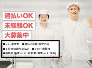 仕事内容 デザート製造の原材料の 調合・投入・検査仕込み業務を 行って頂きます。 20代~50代前半の男女当社スタッフ活躍中♪ 未経験者も安心してチャレンジ可! 入社して一定期間後に、会社負担で フォークリフト免許取得が出来ます。 [醍醐味] 長期的に勤められる職場が多く、毎日の積み重ねによって 自分のポジションができてそれが自信につながっていきます。 職場内はエレメンツのスタッフが多いので、 先輩・後輩スタッフとのコミュニケーションも円滑です。 [厳しさ] エレメンツは従業員の健康管理を重要視しています。 そのため、法定健診の実施はもちろん実施後の指導にも注力しています。 安定した勤務により、長期的なライフワークを実現できるよう相互に目指します。 [こんな人が活躍] ●いろんな職業経験を積みたい方 ●家族との時間を大切にした方 ●自分に合う仕事を探し途中の方 などなどいろんな方が活躍中! 未経験の方でもしっかりと サポートいたしますのでご安心ください! わからないことなどあれば 気軽にお問い合わせください!