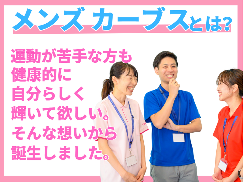 仕事内容 ━━━━━━━━━━━━━━━━ \\ ✨8月 NEWOPEN✨// ✿オープニングスタッフ大募集✿ ━━━━━━━━━━━━━━━━ 新しい店舗×新しい仲間と 一緒にスタートしませんか?? いまだけの"OPEN募集"で、 イチから一緒にお店づくりに関われる♪ ・・・――――――――――――――――― 【働くママさんにも大好評!】 ・8月NEWOPEN!立ち上げメンバー募集 ・2,000店舗以上の女性専用フィットネス 「Curves」から、男性版店舗 「Men's Curves」が新規OPEN! ・女性スタッフ活躍中! 特別な知識・運動経験不問! ・地元の方と楽しく触れ合いたい方歓迎 ・元気な挨拶から始めよう! ・知識や仕事は丁寧に研修にて学べる! ・美容・健康など、自分にもプラスに! ・マシン利用無料!運動不足解消にも! ・日祝固定休み!本部研修あり! 安定性と働き易さも完備! ・・・――――――――――――――――― ╭━━━━━━━━━━━━━━╮ メンズ・カーブスとは ・・・? ╰━v━━━━━━━━━━━━╯ “楽しく気軽に身体を動かす場”として 女性専用フィットネスを 展開してきたカーブス。 顧客満足度は11年連続で No.1を獲得しています(※)。 この度、そのカーブスが監修した 男性専用スポーツジム【メンズ・カーブス】 が姫路市にオープンします! 来店される方は健康寿命を延ばしたい シニアの方や、「ちょっと体重が増えて…」 「何をしてもお腹まわりが減らない」 「運動不足解消」など様々。 これまで運動に一歩を踏み出せなかった 多くの男性の健康習慣づくりに貢献します。 空き時間はマシンの使用もOK! 自分の健康も維持しながら働けます! ※公益財団法人日本生産性本部サービス産業生産性協議会「2025年度JCSI(日本版顧客満足度指数)」フィットネスクラブ部門 ・・・――――――――――――――――― ⭐プライベートも充実⭐ お休みもしっかり取得! 接客業でイメージするような 「休みが少ない」なんてことはありません。 日曜・祝日休み、大型連休もあるので、 休みが少ないからとあきらめていた方も 働きやすい環境でワークライフバランスを 実現しましょう! ⭐未経験者も安心して始められる!⭐ 特別な資格も必要なく、「カラダ」や 「健康」についての知識がなくても◎ 仕事に必要な知識は、イチから 丁寧に研修でお伝えします♪ 未経験の方も活躍しています!! ・・・――――――――――――――――― 【仕事内容】 メンズカーブス店舗での利用者様の 受付や健康サポートをお任せします。 笑顔で楽しく接客ができるお仕事ですよ。 入会を希望される方の受付対応における 電話対応、メール対応なども担当。 プラン内容を説明したり、施設利用の 注意点などもお話します。 会員様が気持ちよくメンズカーブスを ご利用できるよう、1人ひとりに合った 対応が大切です。 <アイデアを活かせるお仕事もあり!> まずは丁寧な研修からスタート! 業務に関して必要な知識などは、 ここでじっくりと身につけられるので、 異業界・異業種からの転職、 未経験の方も大歓迎です。 1人1人と向き合って声を掛けるなど、 利用者様が気持ちよく、 安全にトレーニングを行えるような サポートを一緒に行っていきましょう。 「筋肉をつけたい」「お腹を引っ込めたい」 と通う若い男性や 「健康でいたい」「運動不足を解消したい」 と運動に励むミドル・シニアの方など 当店にいらっしゃる利用者様は、 年齢も目的も様々。 全ての利用者様に「ここに来てよかった!」 と思っていただけるような、 お店づくりを一緒に 目指していければと思っています。 OPEN初期だからこそ、 「みんな同じスタート」で安心! 「新しい職場で自分らしく働きたい」 「ゼロから一緒に盛り上げていきたい」 そんなあなたを歓迎します!