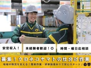 PR 【ヤマトグループでのお仕事】 宅配便サービスの国内シェア、第一位 街中でもよく見かけ、生活に身近な「クロネコヤマト」の会社ですが お荷物を無事にお届けするまでには、様々なお仕事があります。 【ベース(大型物流拠点)での仕分け作業】 仕分け作業とは、お荷物をお届け先ごとに分けるため 段ボールに貼られたラベルなどを見て エリアごとに分けて集めるお仕事です。 ベース(大型物流拠点)での仕分け作業はベルトコンベアを利用しながら 進めていきます。 <こんな方にピッタリ> *未経験でもスグにできるお仕事を探している方 *集中してもくもくと作業をすることが好きな方 *体を動かしながら働きたい方 *Wワークで働いている方 学生、主婦(夫)、フリーター、ミドル世代の方、 様々な方が働いています。 長期勤務も相談可能です みなさんご存じクロネコヤマトの仕分けスタッフとして 働きませんか?