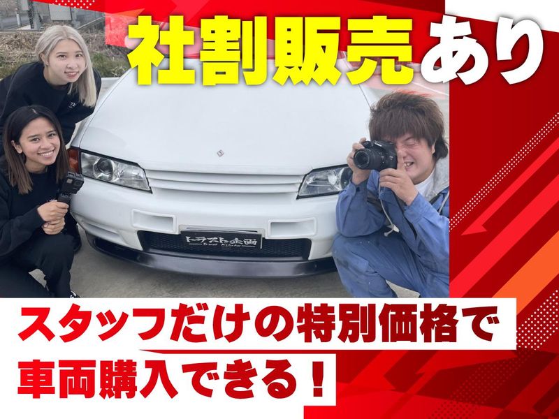 仕事内容 スポーツカーを始めとした中古車(四輪・二輪)を販売する当店にて、の販売から納車までの業務を担当いただきます! <具体的には> 主に、YouTubeチャンネルや自社HP・カーセンサーへの掲載がメインになります。 それらを見てお問い合わせいただくお客様の来店・電話・LINE・メール等の対応や販売後の登録手続き、納車対応等をしていただきます。 時には積載車でお客様へ直接納車に行っていただく場合も。レアな車を運転する機会もあります! \会社負担で資格取得が可能/ ‾‾‾V‾‾‾‾‾‾‾‾‾‾‾‾‾‾‾‾‾‾‾‾‾‾‾‾ 仕事に必要な資格を入社後に取得することが可能です。しかも、費用は会社が負担します。 資格を取得すると保有資格によって資格手当が支給されるので、収入アップにもつながります。 \従業員割引で好きな車を購入可能/ ‾‾‾V‾‾‾‾‾‾‾‾‾‾‾‾‾‾‾‾‾‾‾‾‾‾‾‾‾‾‾‾‾‾ 憧れていた車を従業員だけの特別価格で買えるのが、当社で働く魅力でもあります。 宝の山のような職場で自分の愛車を見つけてください。車・バイク通勤OKなので愛車で会社にも通えます。 \残業なし!毎月昇給チャンスあり/ ‾‾‾V‾‾‾‾‾‾‾‾‾‾‾‾‾‾‾‾‾‾‾‾‾‾‾‾‾‾‾‾‾‾ 好きを仕事にするだけでは、プライベートは豊かになっていきません。 残業はしないで、収入を上げていく。そうした環境が大切だからこそ、ワークライフバランスの取れた働き方を重視しています。 \最大で年間129日も休みを取得可能/ ‾‾‾V‾‾‾‾‾‾‾‾‾‾‾‾‾‾‾‾‾‾‾‾‾‾‾‾‾‾‾‾‾‾‾ 当社では1年間に取得できる有給休暇は24日間と多め!取得は機械で申請するだけなので誰にも反対されることはありません。 そのため、最大で年間のお休み日数は129日(年間休日105+有給休暇24日)と、愛車を運転してお出かけもしやすい環境です。