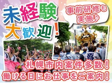 仕事内容 / フリーターさん大歓迎!簡単な歩行者の誘導など! 事前の法定研修があるから未経験や60代・70代も活躍中✨ \ *ー* 札幌市内でたくさんのお仕事をご案内可能! 新しい案件(現場)も続々増えています! 警備スタッフさんを新たに募集するにあたり、 制服もリニューアルしちゃいました!! 超有名大人気アイドルのコンサートや YOSAKOI、プロスポーツイベント、 札幌マラソンやさっぽろ雪まつり・・・などなど! 直行直帰OKなので、自宅から通いやすいエリアで お仕事ができますよ! *ー* 【具体的なお仕事は・・・】 *来場者のご案内・誘導、見回り(巡回) *関係者通路での受付(出入管理) *イベントや店舗の駐車場内での車の誘導 など! *業務内容はイベントによって異なります >1番最初にするお仕事は・・・ まずは法律で定められた 研修を受けていただきます! そのため、警備未経験でも しっかりとお仕事を覚えられます。 もちろん研修中もお給料は発生! 慣れるまでは先輩や責任者が 一緒に同じ現場に行ってくれるので わからないことがあればスグに聞けますよ! *警備経験者・雑踏警備資格保持者も歓迎! >雑踏警備資格手当有(2級5000円/1級1万円) >現場は・・・ 中央区など、札幌市内全域に多数あり! (最寄り:札幌駅/大通駅/すすきの駅など) 交通費は全額支給なので、ご安心ください。 通いやすいエリアのお仕事をご案内できるので、 勤務地に関してはお気軽にご相談ください! 基本的に現場へは直行直帰のため、 お仕事が終われば即帰宅! 春も夏もイベントが盛りだくさん! 1年を通して人気イベントに携われるお仕事ですよ! 【勤務地例】 *北海きたえーる *真駒内セキスイハイムアイスアリーナ *大和ハウス プレミストドーム(旧札幌ドーム) ・・・等! その他にも札幌市内で様々な案件があります! 現場へは直行直帰OK! >暑さ対策もバッチリです。 夏は暑さ対策として空調服と水分補給用のお水、 塩分補給用のタブレットを支給します。 >制服がリニューアルしました! 「速乾素材のポロシャツ」仕様の制服を新たに導入! 動きやすく空気の通りも良いので暑くても快適に働けます! デザインにもこだわり、オシャレでカッコいいと評判です✨