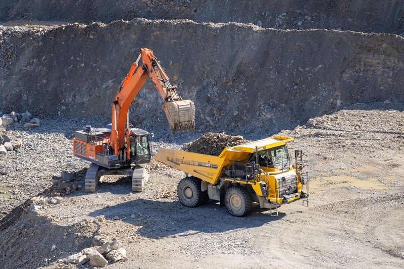 見晴らしの良い鉱山で働く重機オペレーター