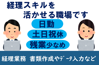 応募条件 ・日商簿記3級以上 ・経理実務経験者 ≪経理、事務経験者大歓迎!≫ 20代・30代・40代・50代の女性先輩スタッフ活躍中!