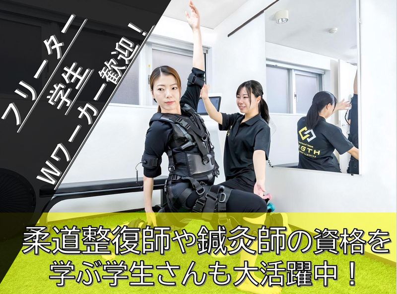 仕事内容 ✅ 週2日~OK!空いた時間を有効活用 ✅ 未経験歓迎! ✅ 成長に応じてしっかり評価 ✅ 社員登用あるので長く続けたい方も◎ 「トレーナーに興味はあるけど、経験がない…」 そんな方も大歓迎! BIGTHは、治療家が監修した安全で実践的なプログラムが学べるパーソナルジム。 アルバイトからスタートして、身体の知識・指導スキルを基礎から身につけられます。 ▼▼▼具体的なお仕事内容は?▼▼▼ ⏩トレーニングサポート ⏩EMSスーツ・駆血トレーニング ⏩ドライヘッドスパ ⏩簡単な受付・栄養アドバイス 未経験者、大歓迎です! できることからスタート! すべて段階的に丁寧に教えます ⭐こんな方にピッタリ ✅身体や健康に興味がある ✅人に喜ばれる仕事がしたい ✅将来、トレーナーとして成長したい 最初からできる人はいません。 「やってみたい」その気持ちがあればOK! ================= ⭐将来的に整体や パーソナルジムトレーナーを 勉強出来る環境もあります。 ⭐柔道整復師や鍼灸師の資格を 学ぶ学生さんも大活躍中! そのまま就職している staffも現在活躍中です! ✅✨【ジムの魅力】✨ 「Be In Good Health」 を理念に、お客様の心身の健康を 支えるため、国家資格を持つ治療家が 開発したトレーニング プログラムを提供。 未経験からでも成長できる 環境が整っています。 ✅✨【トレーナーのやりがい】✨ 短期間の結果だけでなく、 お客様が自立して健康を 維持できるよう長期的に サポートすることが私たちの使命です。 ✅✨【多彩なトレーニングメニュー】✨ EMSスーツトレーニングや フリーウエイトトレーニングなど、 医療と連携した多様なプログラムを実施。 ノルマがないので、お客様との 信頼関係を築きやすい環境です。 ◆ホームページ◆ https://workout-base.bigth.co.jp/