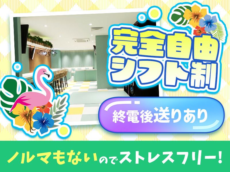 仕事内容: /\/\/\/\/\ 第1期生を大募集~! 採用率高めで案内中↑ /\/\/\/\/\ 南国をイメージとした店内♪ 非日常の空間をお届けするのが『S.F.G』! 現役グラビアアイドルがプロデュースしているお店です!!! なので話題沸騰すること間違いナシ! 将来インフルエンサーやモデルなど 表舞台で活躍したい方も大歓迎★ カワイイ制服を着て青春時代に 戻っちゃいませんか?? 【仕事内容】 《接客STAFF/キャスト》 笑顔でお客様をお迎え ↓ カンタンなドリンク作成 ↓ お客様と会話を楽しむ (( お仕事内容は↑だけ )) かわいい制服を着て お客様といっぱい楽しんでくださいネ☆ お酒が飲めない… なんて心配はいりません× ソフドリで乾杯しちゃいましょっ♪ ナイトワーク未経験… 大歓迎でっす☆☆系列店では9割の女の子が 未経験スタートで活躍中です*