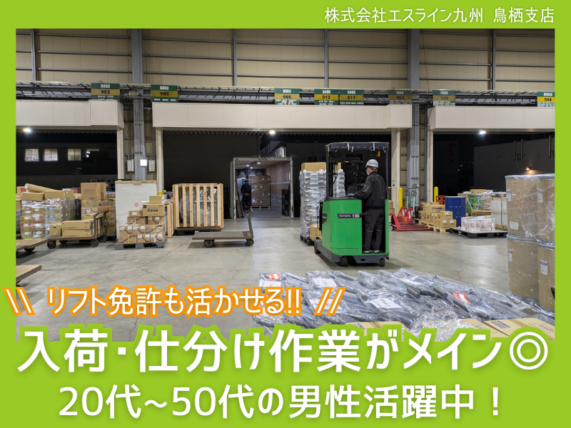 仕事内容 ∴‥∵‥∴‥∵‥∴‥∴‥∵‥∴‥∵‥∴ ⸜ ⭐ 倉庫内作業スタッフ大募集 ⭐ ⸝ 今回の募集は、 将来の正社員登用を前提とした採用です! 3〜6ヶ月後には正社員への道をご用意。 まずは実際の業務を通じて、 仕事の進め方や職場の雰囲気を感じてください。 勤務実績やあなたの強みをしっかり評価し、 長期的なキャリア形成を支援いたします! ∴‥∵‥∴‥∵‥∴‥∴‥∵‥∴‥∵‥∴ 【 お仕事内容 】 全国的な輸送ネットワークを持つ「エスライングループ」の 物流センターで倉庫内作業のお仕事です! 荷物の入出荷業務、仕分け作業を中心にお任せします。 ⏩仕分け作業 ・関東、中部、関西、中国から到着した荷物の仕分け ・各配送先・市町村毎への仕分け ・荷物に貼られたラベルを見て、仕分け作業 ⏩センター内の倉庫整理 ⏩簡単な事務処理、伝票整理 ⏩その他付帯する業務 < 入社後は... > 2~3ヶ月をかけてじっくり丁寧に教育を行います。 一つずつステップアップできるようサポートしますので、 焦らず着実に業務を習得していただければと思います! ∴‥∵‥∴‥∵‥∴‥∴‥∵‥∴‥∵‥∴ 【 求人のポイント 】 ⭐物流業界未経験の方でも安心◎  ̄ ̄ ̄ ̄ ̄ ̄ ̄ ̄ ̄ ̄ ̄ ̄ ̄ ̄ ̄ ̄ ̄ ̄ ̄ ̄ ̄ ̄ 夜間の作業は基本的に2人で行います。 一番忙しくなるメインの時間帯は、 アルバイトさんも含めて計6名になりますので、 協力しながら、安全第一で進めていきましょう! ⭐免許取得を全力バックアップ!  ̄ ̄ ̄ ̄ ̄ ̄ ̄ ̄ ̄ ̄ ̄ ̄ ̄ ̄ ̄ ̄ ̄ ̄ ̄ ̄ ̄ ̄ 働きながら一生モノのスキルを手に入れるチャンス! 「免許取得支援制度」を利用してスキルアップしませんか? 業務の幅を広げたい方、キャリアアップを目指したい方、大歓迎です★ 【全額会社負担の各種免許証制度】 大型免許・中型免許・フォークリフトなど(※諸条件あります。) 当支店より大型免許取得者2名・中型免許取得者2名・フォークリフト免許取得者7名が在籍中です。 ∴‥∵‥∴‥∵‥∴‥∴‥∵‥∴‥∵‥∴ 【 会社について 】 株式会社エスライン九州は、九州地方を中心に物流・運送業務を展開し、 主に荷物の輸送、物流管理、トラック運送を行っています。 企業間輸送(B2B)を中心に、九州全域や本州への配送サービスを提供しており、 大手企業や中小企業向けの安定した物流サポートを行っています。 鳥栖支店では、九州内外への輸送業務、荷物の集荷、配送、 倉庫管理などの業務が行われています。 鳥栖九州の物流拠点として重要な位置を占める場所なので、 エスライン九州の輸送ネットワークにおいて重要な役割を果たしています。