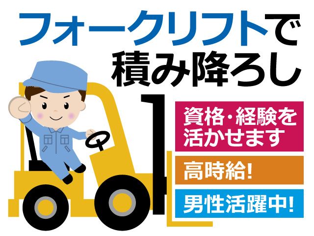 資格・経験 ・フォークリフト講習修了者の方、実務経験がある方大歓迎! ・学歴不問 ・ブランクのある方も大歓迎! ・男性活躍中の職場です