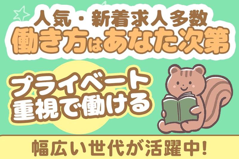 【保険制度】 雇用保険、労災保険、健康保険、厚生年金 待遇・福利厚生 【福利厚生】 ■交通費支給 ■社会保険完備 ■社員割引あり ■扶養内勤務OK ■産休・育休実績あり ■制服貸与 ■研修制度あり ■社用登録あり ■服装・髪型自由 ■ネイル・ピアス・ヒゲOK ■履歴書不要 【働きやすい環境】 豊富な求人で あなたにあった職場をご紹介! フォロー体制も充実し定期的にお話を することで不安を解消します! なんでもお気軽にご相談OK!