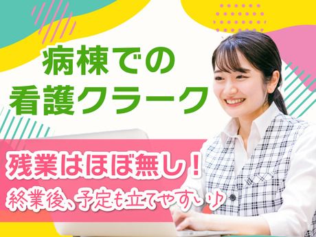 仕事内容 大きな病院だからこそ、安心・安定をお約束◎ビジネスライクな働き方が向いてる!という方ぜひ >> おすすめポイント << ◇残業はありません!毎日定時退社が可能☆彡 ◇ウレシイ土日祝休みでプライベートの予定が立てやすい♪ ◇資格取得制度あり!働きながらキャリアアップが可能です♪ 病棟にて看護師さんの事務サポート業務を お願いします。 【お仕事内容】 *カルテの管理 *患者様の入退院手続き *電話対応、受付事務 *面会者対応 *ナースコール対応 *配膳補助 *メッセンジャー業務 *検査室・手術室移送 *薬品・検体・点滴運搬 *コピー・スキャン依頼 …など 現在、働いているスタッフの中には クリニックでの医療事務から転身された方もいらっしゃいます。 経験年数は一切不問です! ブランクOK◎ この機会に ・残業なし ・土日祝休み(完全週休2日制) の環境にキャリアチェンジを 考えてみてはいかがでしょうか? 無理のない働き方ができる環境でお待ちしています! - ▼働くスタッフの声▼ ★20代後半・女性 学生時代にバイトしてたクリニックに そのまま就職したんですが、 院内のアットホームな雰囲気が 年々ちょっと窮屈に感じてきて… なんというか、人間関係が良好だからこそ 残業があっても普通にやるよねみたいな 変な連帯感に少し違和感があったんですよね。 今の病院は前の職場と比べると、ゆるさとか仲の良さとかは そんなになんですけど、キッチリしてて 引き締めるべきところがちゃんとしてるので 働きやすさとか、プライベートの時間の余裕は 格段に上がってます。 ★30代前半・女性 「総合病院って厳しそうだな~」っていう偏見があって、 小さめのクリニックで何年か働いてました。 シフトは割と融通きかせてもらってて、 残業もそこまでなかったので、そういう面で悪いところでは なかったんですが、ちょっとどうしても苦手な先生がいらっしゃったんですよね。 全体的なスタッフ間の距離の近さが シフト面での働きやすさに繋がってはいたと思うんですけど、 若干の居心地の悪さがずっとあって……。 年度の節目に思い切って今の職場に転職しました。 医療事務としての経験はあったので、 仕事そのものに慣れるまではあっという間でしたし、 ビジネスライクな雰囲気も、言っちゃえば「プライベートに干渉されない」 っていうことなので、案外こっちの方が自分向きなのかもしれないですね。 <KO_O>
