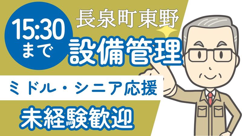 求めている人材 ◇設備管理の経験があれば尚可 ◇フォークリフト免許所持者優遇 ◇平日も勤務できる方 ※土日のみは不可 ・未経験者歓迎 ・経験不問 ・年齢不問 ・学歴不問 ・ブランク歓迎