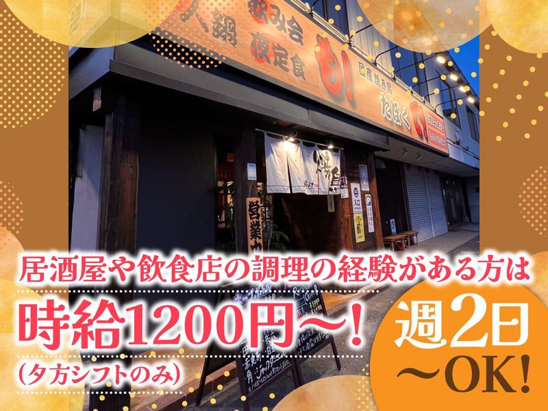 仕事内容 ✅ 女性活躍中!雰囲気◎の焼き鳥居酒屋 ✅ 普段料理をされている&飲食店での勤務経験者は時給1200円!! ✅ 夕方からのシフト募集◎ ✅ 臭いが気にならないガス焼き♪ ✅ 週2日~、Wワーク・扶養内勤務OK! ✅ 派手過ぎなければ…ネイルOK! 【具体的なお仕事】 ・焼鳥の焼き手や簡単な調理等をお任せ! →レシピ完備!手順通りにすれば誰でも簡単に焼けます◎ ・慣れてくれば包丁を使ってもも肉を切ったりなどもお願いします。 ・その他、一部ホール業務など ⭐当店はガス焼きなので、炭火焼き特有の臭いがつく心配は無し! オシャレ好きな方も安心して勤務できます! (制服も貸与します) 今回は、夕方シフトの募集! 空き時間を使って働けるので、 お子さんの送り迎えの間や、 子育てが落ち着いた方にもピッタリな職場です! ◇インスタにてお店の雰囲気も投稿中♪ https://www.instagram.com/taboku_yakitori/ - お店の紹介 - 有名焼き鳥居酒屋の常連だった現店長が、 縁あってお店を引き継ぎ、オープンしました! 店長が女性な事もあり、主婦さんや学生さんなど多くの女性スタッフが活躍中! 女性・主婦さんならではの悩みにもしっかり寄り添います! シフトは一人ひとりの希望を聞きながら組んでいきます!