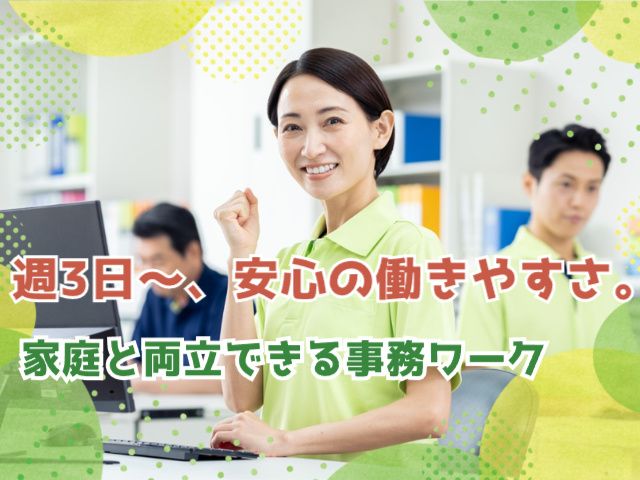 仕事内容 長野市川合新田にある サービス付き高齢者向け住宅 「フォーエバーケア緑風」です。 介護施設で一般事務のお仕事を担当して いただくパートさんを募集しています。 「仕事内容」 当施設での介護書類の作成やデータの管理、 事務業務をお願いします。 具体的には ・PCでのデータ管理(エクセル使用) ・データ印刷 ・印刷物のファイリング ・伝票作成 「資格などは必要ありません」 特別な知識・資格は必要ありません。 基本的なPC操作スキル(エクセル)があればOKです。 データ入力事務の経験がある方は、 すぐにお仕事に馴染めます! まずは簡単なお仕事からスタートし ゆっくり仕事を覚えていきましょう。 未経験の方にも親切・丁寧に指導します。 「年齢などは問いません」 当施設では、20代~50代まで 幅広い方が働いています。 中途採用で30代以降から未経験で お仕事をスタートされる方も多数居ます。 ミドル(30代~40代)シニア(50代以上)の方も 活躍出来るお仕事です。 「ココがおすすめポイント」 お仕事は9:00~13:00までの1日4時間と なります。 シフトは出来るだけご希望に沿いますので 都合が悪い場合などは、お気軽にご相談ください。 あなたの都合に合わせて働けます。 勤務日数も週3日~ご相談に応じます。 小さなお子様が居る方も安心して働けます。 〇知識・資格不要 〇未経験者大歓迎 〇扶養内の勤務もOK 〇13:00までのお仕事 〇週3日~勤務OK 〇主婦(夫)の方活躍中 「正社員登用あり」 当施設では正社員登用制度もあります。 初めての方も徐々に仕事に慣れてから 正社員での勤務を希望される方は パートから正社員に転向する事も可能です。 お気軽にご相談ください。 勤務地は長野市川合新田です。 長野市内はもちろん 千曲市や須坂市、小布施町、中野市などからも 通勤圏内です。