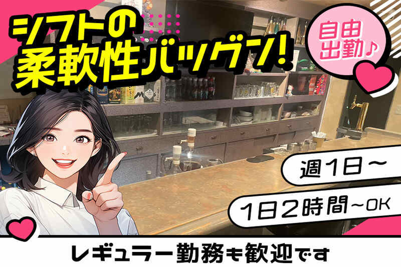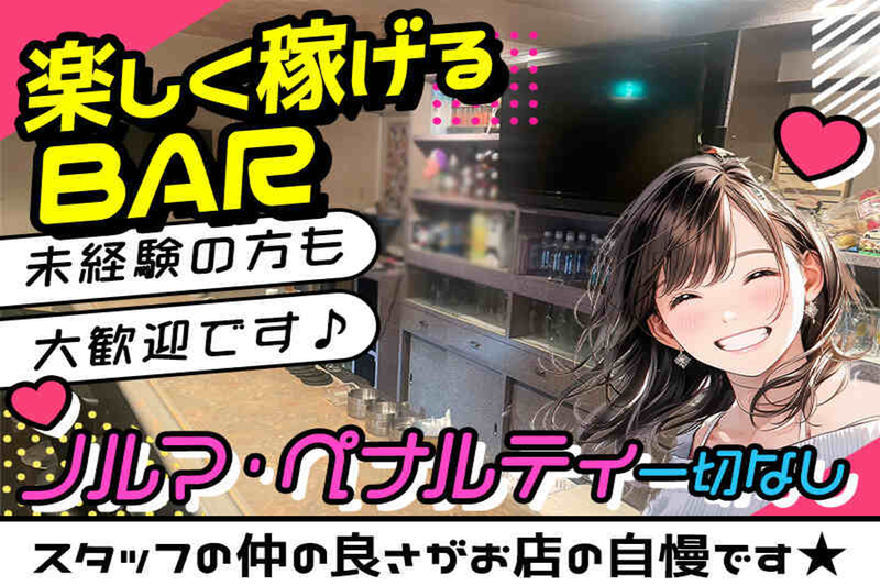 求めている人材 周りはみんなほぼ未経験スタートの子が多数! ■未経験大歓迎♪ ■経験者優遇☆ ■学生・既婚者・フリーター大歓迎 ■Wワーク・会社員大歓迎 ■友達同士の応募OK! <こんなあなたにもピッタリ♪> ★ノルマや派閥があるお店は嫌! ★全員が同期なら安心かも☆ ★スキマ時間で働きたい! ★毎日日払いでお給料が欲しい! ★ネイル・ピアスもガマンしたくない◎ ★スナック、バーでの経験がある ★スナック アルバイトの経験を活かしたい ★ナイトワーク始めたい ★アルバイト探し中! ★bar アルバイトで探している方 ★短期でも働きたい!