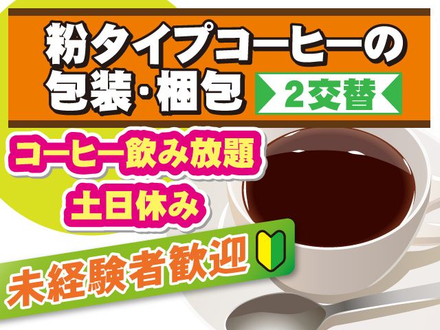 【熊谷市万吉】人気の軽作業&未経験歓迎♪ 粉コーヒーの包装スタッフ★冷暖房完備★電話面接OK!