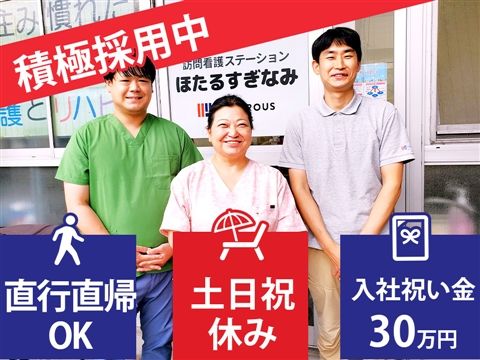 <管理者インタビュー> ●36年の大学病院経験を経て「利用者さん中心の看護」を追求する場所へ 大学病院で36年間、様々な病棟で看護に携わってきた私がなぜ訪問看護の世界に飛び込んだのか。そして、訪問看護の現場で感じる喜びや、当ステーションの魅力について、管理者である私がお話しします。 【私が訪問看護を選んだ理由】 長年勤務した大学病院を退職後、自身の今後について考えた時、頭に浮かんだのは病院での退院支援業務でした。患者さんが退院された後の生活がどうなっているのか、ずっと気になっていました。そんな中、以前研修で経験した訪問看護の仕事の楽しさを思い出し、「在宅医療の現場で、もっと利用者さんの生活に寄り添った看護がしたい」という思いが強くなりました。 【「訪問看護ステーションほたる すぎなみ」を選んだ理由】 今の職場である「訪問看護ステーションほたる すぎなみ」を選んだのは、何よりも「事業所の雰囲気の良さと、面接時の対応に惹かれた」のが決め手でした。法人としては、多岐にわたる在宅事業を展開していることも知り、「基盤がしっかりしているから安心して働ける」と感じたことも大きかったですね。 【病院とのギャップ、そして訪問看護の面白さ】 訪問看護に転身する際、特に不安はありませんでしたが、実際に現場に出てみると病院との違いに直面しました。病院は医療行為が中心ですが、在宅では「何もない」環境で、利用者さんをよく「看て」「聞いて」「触って」、嗅覚を研ぎ澄ます力がより重要になります。病院にいた頃よりも、利用者さんの身体を細部まで観察するようになりましたね。 限られた環境の中で、今あるものでどう支援できるか、利用者さんの生活の中で何を手助けできるかを一緒に考え、実践していく。そして何よりも「意思決定は利用者さん自身」という考え方を徹底すること。ここに訪問看護の難しさもあり、同時に大きな面白さ、やりがいを感じています。多様な考え方にどこまで寄り添えるか、利用者さん主導で、スタッフ皆で看護を作り上げていく。病院では経験できない、生活に根ざした「本当の手技」があるのも魅力ですね。 【「訪問看護ステーションほたる すぎなみ」の魅力①:風通しの良いフラットな環境】 当ステーションの一番の強みは、何と言っても「雰囲気の良さ」です。アットホームという言葉はあまり使いたくないのですが、本当にスタッフ同士の仲が良く、親子のようだと言われることもあります。何か困ったことがあればすぐに声が飛び交い、訪問先からでも遠慮なく相談の連絡が入ります。この風通しの良さは、当ステーションの大きな特徴です。 看護師とリハビリスタッフが半々くらいの割合で在籍しており、皆がお互いを尊重し合っています。そして何よりも「利用者さんがちゃんと真ん中にいる」。これは、「こうあるべきだ」という固定概念がなく、皆がフラットな視点で利用者さんと向き合えているからかもしれません。 また、担当制ではないため、誰かが困っていれば皆で知恵を出し合い、利用者さんの情報を共有してサポートします。リハビリのスタッフも話しやすく、気軽に相談できる環境です。 【「訪問看護ステーションほたる すぎなみ」の魅力②:働きやすさ】 直行直帰も可能で、訪問エリアも杉並区、練馬区、中野区の一部と狭いため、移動の負担も少ないです。訪問件数は多くて6件、少なくて4件(午前2件、午後2~4件が目安)で、無理なく働けます。制服は好きなデザインを自由に選べ、物品などの経費も比較的柔軟に認められるなど、スタッフが働きやすいよう配慮しています。希望休もほぼ通り、月の希望日数の指定もないので、プライベートとの両立もしやすいですよ。クリニックや病院と掛け持ちで働いているスタッフもいて、訪問看護で経験を広げたり、子育てしながら時間を有効活用したりしています。 【未経験者も大歓迎!「迷っているなら、一緒に働きませんか!」】 「訪問看護に興味はあるけれど、経験がなくて不安…」そんな方も、ぜひ一度私たちの話を聞きに来てください。私たちは、コミュニケーションを大切にできる方なら大歓迎です! 利用者さんを大事に思う気持ちを一緒に考え、スタッフ皆で協力し合いながら、利用者さんがより自分らしく生活できるよう支援していく。そんな訪問看護を、私たちと一緒に「訪問看護ステーションほたる すぎなみ」で実現しませんか? 「迷っているなら、一緒に働きましょう!」 あなたのエントリーを心よりお待ちしています。 <研修・教育制度について> ●メンター制度を設けています。 新しい環境は仕事を覚えること以外にも不安なことがあると思います。 入社3ヶ月間はメンターが中心に相談や悩みを聞いて、一緒に解決していくことで早く職場に慣れてもらいたいと考えています。 ●OJTにてしっかり同行研修を行います! 人によって成長スピードは様々ですので、特にこの期間というのは設けて