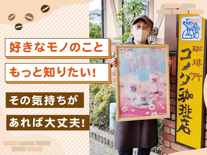 仕事内容 ◆コメダ珈琲【北九州桃園公園店】の運営スタッフ <主な業務内容> ◇接客 接客は「これ!」といった決まりが 沢山あるわけではないので、あなた らしくいられるスタイルを探してみ てくださいね◎ ◇調理 調理といっても、レシピの材料を パズルのように組み合わせていくだけ。 調理未経験の方も安心です。 ゆくゆくは… シフトの管理や、食材の発注など 店舗管理業務をお任せできたらな~ と思っていますが、あせらず、 まずは接客や調理方法などを覚えて 行きましょう。 《スタッフからのメッセージ》 「大好きなコーヒーの近くで 働いてみたい!」 「人と関わるのが好きだから」 「慣れ親しんだ地元で働きたい」 …など、スタートのきっかけは人 それぞれですよね。お客様はもちろん、 働く私たちにとっても心地良いと思える 空間づくりを一緒にしていければいいなと 思っています!