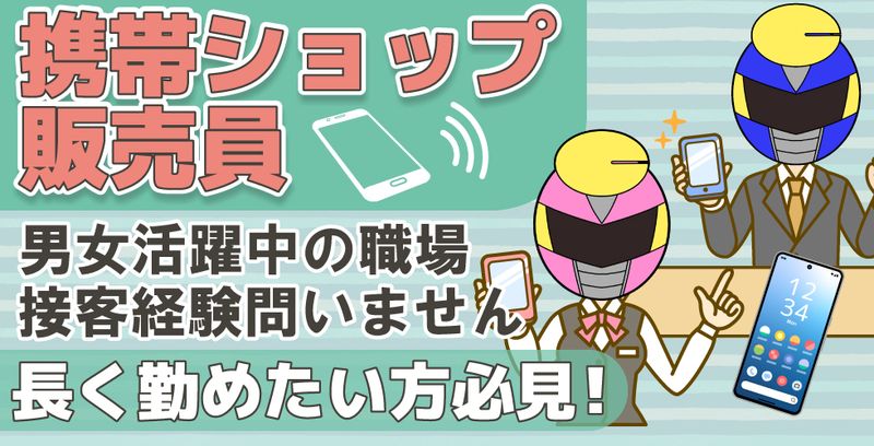 ★携帯ショップでのお仕事★ていねいに研修しますので、未経験でも大丈夫!★シフト制のお仕事/土曜日のお休みもあり/社員登用もあります