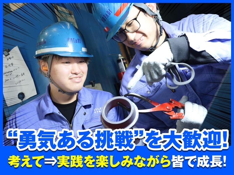 仕事内容 ワクワク感も安心感も欲張れる!? 実践し、考え、相談し、もう一度挑戦… 毎日新鮮&病みつきになるものづくりで 世界基準の技術を身につけませんか? ==================== “早期退職者ほぼゼロ”を誇る育成支援。 手厚すぎるサポートで世界に誇れる仕事を! ==================== 鍛造プレス機と呼ばれる機械を操作し 自動車部品を作る 製造スタッフを募集します。 自動車を動かすために必要な ギヤなどの部品の製造を行います。 ✅土日固定休み ✅年3回の長期連休(最大11連休)あり ✅有給休暇はほぼ100%希望通りに取得 ✅ボーナスは4ヶ月分支給実績あり ✅30歳で年収580万円以上可能 ✅UIJターン支援手当や資格支援あり などなど ここでは書ききれないくらい 魅力がた~っぷりの当社。 条件面だけを見ても 働きやすさや安心した職場環境であることは きっとわかっていただけると思いますが、 実は当社の魅力はそれだけじゃありません! 高定着率を誇る当社の とっておきの秘密とは… ――――――――――――――――――― 【【 手厚すぎる育成支援! 】】 ――――――――――――――――――― ギヤって何?機械に触れたこともない… そんな方でも 徐々に成長できるプログラムを ご用意しています。 まず入社が決まったら、 「教育担当」「メンタル担当」 「キャリア担当」 と3人の先輩があなたの成長をフォロー! ▼教育担当の先輩から マンツーマンで技術を学び、 ▼メンタル担当とのこまめな会話で 不安や悩みはすぐに解消、 ▼キャリア担当と記録を振り返りながら あなたが活躍し続ける将来へと 着実にステップアップ… と心強い味方たちが 入社直後から業務が始まり、 独り立ちまで丁寧に育て上げます。 約1年で独り立ちとなりますが、 その後も定期面談で振り返りを実施。 1つのラインを3人体制で 作業を進めていくので、 同じチームのメンバーと 相談し合いながら成長できます。 ▼さらに現場のスタッフからは… 「上司や後輩関係なく 誰に質問しても丁寧に答えてくれるので 分からないことはすぐ聞けます! フォローし合うことが 当たり前にできる職場で 新人の方も安心して始められますよ」 ==================== うちでもの足りないとは言わせない! 挑戦と成長で充実した日々へ! ==================== 充実した育成プログラムで 安心して始められることは ご理解いただけたでしょうか? とはいえ、 「サポートが手厚くったって 慣れて飽きてしまったら…」 なんて心配だって当社ではご不要! 30年40年先も楽しめる理由は… ――――――――――――――――――― 【【 自由に新しい挑戦ができる! 】】 ――――――――――――――――――― 「勇気ある挑戦を」を 会社のスローガンにしており、 社員のやってみたいことは 会社や上司、同僚みんなで応援! 業務効率や品質改善、 働きやすさにつながるアイディアなら 気軽に発案してOK! 必ず上司が意見を聞き 実行できるか検討してくれるので、 どんどんアイディアを活かせます! しかも、あなたの発案が実行され 利益や効果に繋がったら その分きちんと評価! 日々の頑張りと希望次第では 30代で役職者へ昇進など キャリアアップも目指せるので 何年経っても挑戦と成長で 毎日充実したキャリアを過ごせます。 ▼会社とともに成長を楽しもう! 当社「株式会社コタニ」は、 国内外のメーカー様に向け 自動車部品の製造を行っていますが… ⏩日本の車の80%で使用! ⏩国内では全メーカーで使用! ⏩世界基準でも高品質&高精度! ⏩電気自動車部品も製造中! 創業から55年と まだまだ成長途中ですが、 「世界のコタニ」と呼ばれるほど 国内外で高く評価されています。 ここまで短期間で 実績と信頼を積み上げられたのは、 「新しい挑戦をし続けてきた」から。 他社では実現できなかった 新しい部品を生み出したり 新設備を導入したり… 今なおチャレンジを 会社も社員も楽しんでいます。 ここでしかできない製品作りにくわえ、 会社や仲間と挑戦し みんなで一緒に成長できる。 そんな会社や人に少しでも 興味を持って下さった方へ、 ここでしかできない製品を生み 毎日が新鮮で面白いキャリアを スタートさせてみませんか? ====================