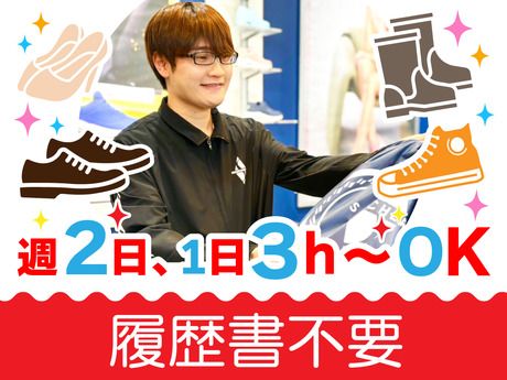 仕事内容 \求人のポイント!/ ・未経験スタート応援! ・手厚い研修制度あり! ・週2日~/1日3h~シフト相談OK! ・家事、育児、学業と両立OK! ・お得なスタッフ割引あり! ■仕事内容 スニーカー・ブーツなど、靴や小物の販売。 *具体的には ・シューズの販売 ・接客 ・補充/品出し ・売り場の整理整頓 など。 ★ショッピングモールなどに出店しているため、 年中働きやすい環境が整っています♪ ■シフトは柔軟対応! 「学校行事」「テスト期間」…など、 勤務シフトはご相談ください! 【 例えばこんな働き方! 】 *主婦(夫)さんの場合… ・お子様の送り迎えに合わせて *学生さんの場合… ・平日は夕方から、土日祝はフルタイム *フリーターさんの場合… ・レギュラー勤務でしっかり稼ぐ ■未経験OK◎充実の研修制度あり! 「靴の知識はないけど接客がしたい」 「靴が好き・興味がある」 …そんな方は大歓迎♪ 初めてでも安心して働けるよう、 手厚い研修制度をご用意していますので、 働くうちに靴の知識が身につき、詳しくなれますよ! スタッフ皆でしっかり応援します。 ■当社はイオングループです 運営する株式会社ジーフットはイオン・ イオンモール・イオンスタイル・ イオンフードスタイル(旧ダイエー)など を中心に全国の商業施設などに出店中です。