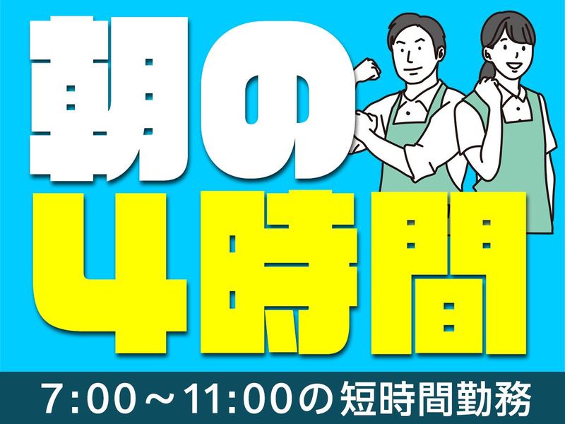 勤務時間詳細 【勤務時間】 7:00~11:00(実働4時間) 【勤務日】 月・火・水・木・金 ※週2日~週5日で勤務日数応相談 ※扶養内勤務・WワークOK