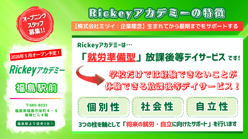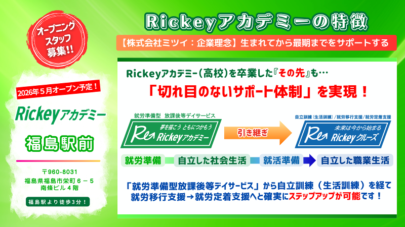 【オープニングスタッフ募集!】福島初開設:2026年5月新規オープン予定!主に中⾼⽣のサポート・送迎業務無し! 経験/資格だけでなく人柄を最重視☆福島駅前アクセス良好♪