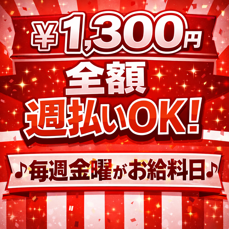 時給1,300円~1,625円 給与詳細 基本給:時給 1300円 〜 1625円 ■週払い制度(当社規定あり) ■日払い制度(当社規定あり) ■通勤手当あり