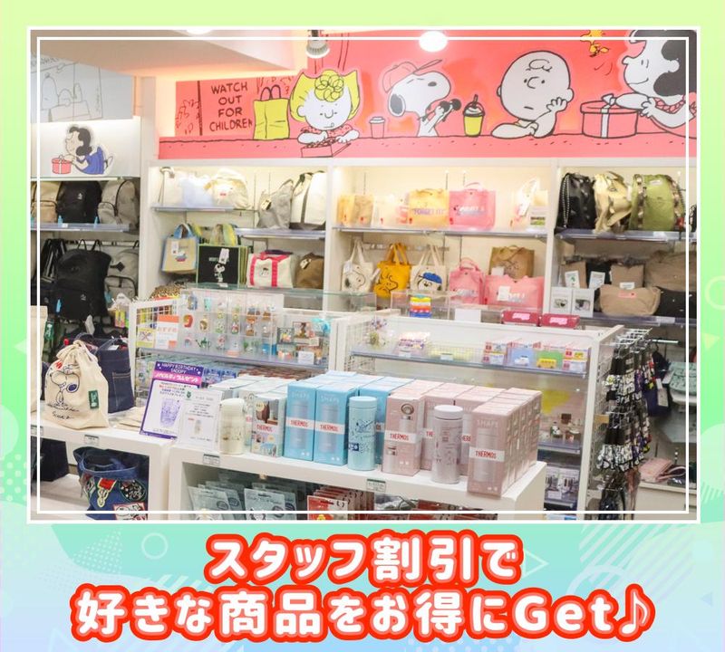 仕事内容 ◇学生・フリーターさんにもオススメ◇ 主に、接客・レジ業務のほか、商品の検品や品出し、商品整理などをお任せします。 【可愛いモノが好き】【スヌーピーが好き】応募理由はこれでOKです! 【未経験でも大歓迎!】 お店を一緒に盛り上げて下さる方を大歓迎します♪ 「アルバイトがはじめて・・・」でも人と会話をすることが好きな方や 明るい対応ができる方は大歓迎です!! 是非ご応募下さい☆