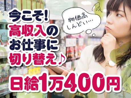 日給10,400円 給与 日給 1万400円 (一律手当を含む) 交通費:通勤交通費全額支給 駅チカ!通勤ラクラク♪ 【給与例】 給与例 【月収例】 日給1万400円×月21日 =月収21万8400円! ※深夜割増含む