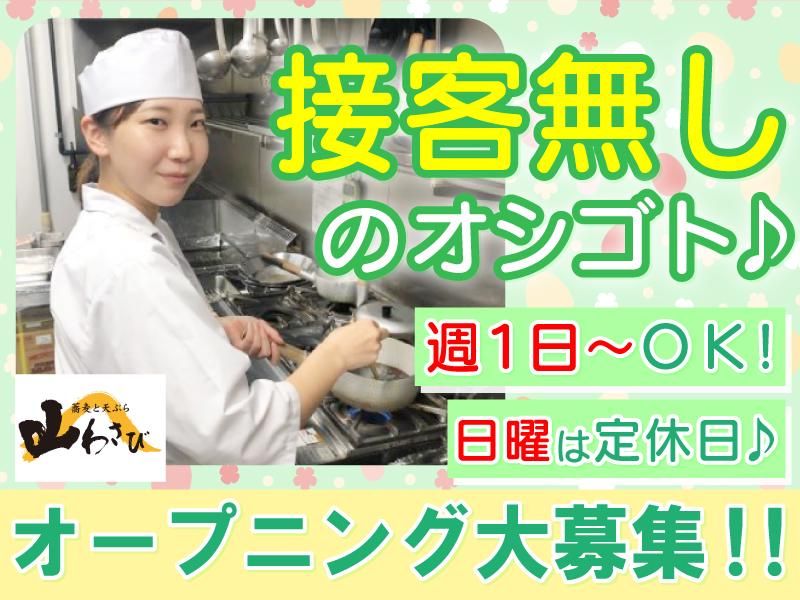 仕事内容 / 北海道で展開する人気蕎麦屋がOPEN! 札幌駅スグの新店でオープニングSTAFF大募集✨ \ 蕎麦と揚げたての天ぷらが楽しめる 蕎麦屋「山わさび」がNEW OPEN!! 発寒と苗穂の札幌2店舗をはじめ、 旭川・千歳とイオンに出店する 人気の蕎麦屋です! 新しくOPENする「北8条店」は、 お昼はお得な蕎麦ランチが楽しめ、 夜はお酒とおつまみ、〆の蕎麦が堪能できる 2つの顔を持つ新しいお店です✨ 今回の募集では山わさび北8条店の ランチタイムのキッチンスタッフを大募集中! 簡単な接客のお仕事のため飲食未経験の方や、 働くのが久しぶりの方も安心してご応募ください。 簡単な料理のお手伝いのお仕事のため、 飲食未経験の方や働くのが久しぶりの方も 安心してご応募ください。 【具体的なお仕事は】 まずは食器洗いやサラダの盛付けなど 簡単なお仕事からお願いします! 慣れてきたら少しずつ食材の準備など 調理の補助をお任せします! 接客のお仕事は一切ナシ! モクモクと働きたい方にオススメです。 #丁寧な研修があるから安心! #飲食未経験さんも大歓迎です! <#山わさび北8条店はこんなお店!> #シフト自由&あの日がお休みです・・・! シフト希望は毎週提出OKのため、 プライベートの予定に合わせて働きやすいです! また、山わさび北8条店は飲食店では珍しく 「日曜・祝日」が定休日! 人手が少なくなりがちな日曜・祝日がお休みなので、 シフトを気にせずしっかり休めるのもポイントです* #絶品の特典付き! 昼も夜も「無料のまかない」をご用意! 食費を浮かせたい主婦(夫)・学生さんから大好評です! #研修もしっかり行います! 3月のOPEN前にしっかりと研修を実施いたします! オープニング募集ではありますが、 教育体制もしっかりと整えているので、 安心してOPEN日を迎えられますよ!