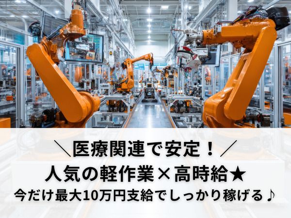 \医療関連で安定!/人気の軽作業×高時給★今だけ最大10万円支給でしっかり稼げる♪