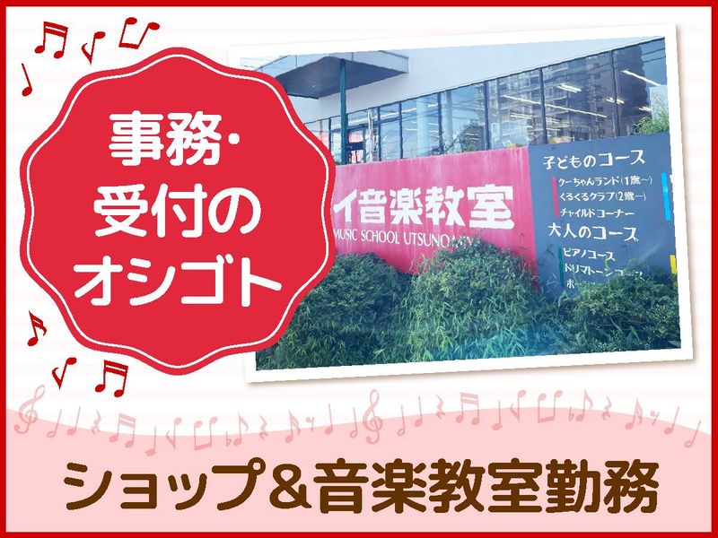 仕事内容 \音楽が好き♪楽器が好き♪大歓迎/ *** カワイ宇都宮ショップと、併設の カワイ音楽教室 宇都宮東センターで 好きな音楽を身近に感じながら 新しいキャリアをスタート☆ \この求人のオススメポイント♪/ *** ★楽器や楽譜に囲まれながら働ける♪ ★興味・趣味を仕事にできる♪ ★ブランクからの仕事復帰も大歓迎♪ ★楽譜やファンシー小物を社割で買える♪ ★残業なしで快適に働ける♪ ★地元の主婦さん活躍中! \こんなオシゴトをお任せ♪/ *** ●楽譜や楽器等の発受注 ●経費精算 ●接客 ●事務全般 ●音楽教室の受付 ●生徒管理 ピアノショップの事務業務と 音楽教室の受付業務をお任せします! まずは簡単な業務からお任せするので ブランクのある方も安心してください! 先輩スタッフが丁寧にサポートします♪ わからないことがあれば 気軽に質問できる環境です! \事務と接客のメリハリワーク♪/ *** 「事務に興味はあるけれど、 ずっと座りっぱなしは苦手…」 「人と関わることが好き♪」 そんな方にピッタリの環境です。 事務作業と接客をバランスよく行えるので 気持ちを切り替えながら働けますよ♪ \音楽やピアノを身近に働けます♪/ *** カワイ宇都宮ショップは、グランドピアノ、 アップライトピアノ、デジタルピアノ、 楽譜、防音室などを展示販売しています。 音楽に関するアイテムが揃う楽しい環境♪ ウレシイ社員割引制度があるので、 スタッフさんたちの中には楽譜や ミニピアノをプレゼントとして 買っている方もいらっしゃいます! また、併設のカワイ音楽教室では、 子供から大人まで多くの生徒さんに 音楽の楽しさ、喜びを伝えています。 \家庭と両立しているスタッフも多数♪/ *** 「子育てが落ち着いたから そろそろ復帰したい」 「音楽に囲まれて働きたい」という方も! 事務や接客経験を活かしたい方も大歓迎♪ 育児や家事と両立している 音楽好きのスタッフが多数活躍中です♪