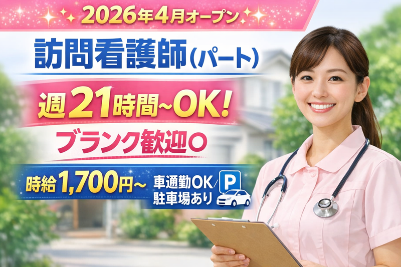 仕事内容 ◤ ̄ ̄ ̄ ̄ ̄ ̄ ̄ ̄ ̄ ̄ ̄ ̄ ̄ ̄◥ ✨4月にオープン予定‼✨ ◣______________◢ ⸜⸜臨床経験3年以上の方募集!⸝⸝ ⏩週21時間以上~OK! ⏩週3日勤務もOK(週21時間以上必須) ⏩社用車・マイカーどちらも使用OK! ⏩20代・30代・ミドル世代も活躍中 ⏩患者様に寄り添う姿勢があり、 訪問看護を学ぶ意欲がある方は 経験3年未満も相談OK‼ ⊹・ ┈┈┈┈┈ ・⊹ ・ ┈┈┈┈┈ ・⊹ ⭐在宅療養中の利用者様の自宅訪問! 医師の指示書に沿った 看護業務をお任せ! [お仕事内容] ■ご利用者様宅への訪問 ■看護業務 (健康状態の観察・服薬管理 医療処置・ターミナルケアなど) ■訪問記録・データ作成 ■医療機関との連携 など 訪問は1日7件程度 社用車・マイカーどちらも 使用OKです ※看護師として、 医師の指示書に基づき 訪問看護を行います ☕チームで協力して取り組むので安心♪ └分からないことはすぐに聞けます! ⊹・ ┈┈┈┈┈ ・⊹ ・ ┈┈┈┈┈ ・⊹ < ⛳当社について⛳ > 地域の利用者様に 安心して在宅生活を送れるよう サポートする訪問看護ステーションです! 患者様を大切に考えながら、 スタッフ同士も助け合って 明るく優しい雰囲気で取り組んでいます! ⊹・ ┈┈┈┈┈ ・⊹ ・ ┈┈┈┈┈ ・⊹